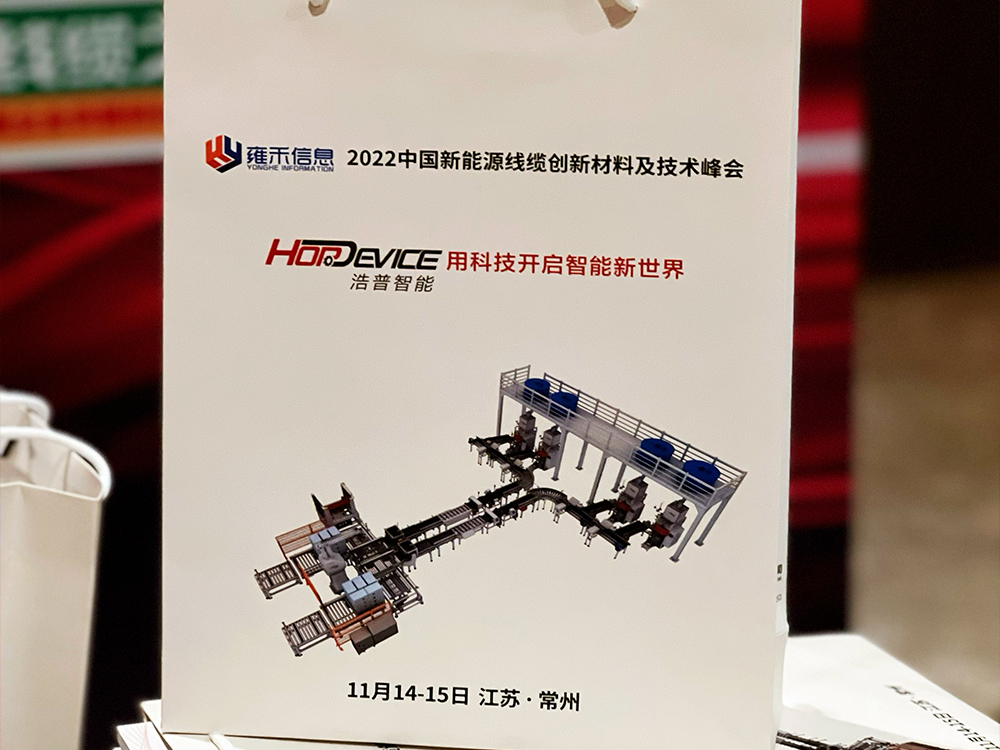 由山東雍禾信息技術(shù)有限公司主辦的“2022中國(guó)新能源線纜創(chuàng)新材料及技術(shù)峰會(huì)”,在2022年11月14-15日常州新城希爾頓酒店盛大召開(kāi)。主要由來(lái)自電線電纜生產(chǎn)企業(yè)、電纜料生產(chǎn)企業(yè)、智能產(chǎn)線設(shè)備供應(yīng)商、認(rèn)證檢測(cè)機(jī)構(gòu)、線纜料助劑及輔料、原材料供應(yīng)商、科研機(jī)構(gòu)的相關(guān)專家、學(xué)者齊聚一堂,浩普智能有幸參加此次峰會(huì),通過(guò)會(huì)議贊助、提問(wèn)交流、產(chǎn)品展示、等多種形式進(jìn)行經(jīng)驗(yàn)交流和分析。
