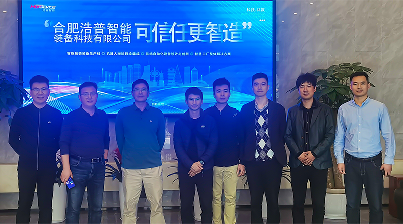 越南客戶一行與企業(yè)管理、技術(shù)人員進行座談交流,詳實了解了公司的發(fā)展歷程與企業(yè)文化;并實地考察了我司的生產(chǎn)制造中心,現(xiàn)場觀看了供料輸送系統(tǒng)、全自動包裝碼垛系統(tǒng)、機器人拆包系統(tǒng)等核心產(chǎn)品的運行演示,對浩普智能的技術(shù)實力表達了充分的認(rèn)可。